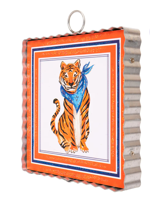 The Mini Gallery Navy & Orange Tiger by The Round Top Collection showcases a refined blend of Auburn University spirit and artistic elegance. Measuring 6" x 1" x 7", this piece by artist Rosanne Beck is designed to hang, adding a subtle yet distinguished touch to any space. Its navy and orange palette captures vibrant school pride with sophisticated style.