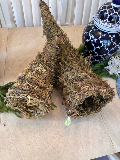 Indulge in the natural beauty of our 25" Vine/Moss/Twig Cornucopia. Hand-crafted with delicate vines, lush moss, and intricate twigs, this piece exudes opulence and refinement. Perfect for adding a touch of elegance to any interior design, this cornucopia is a true work of art.