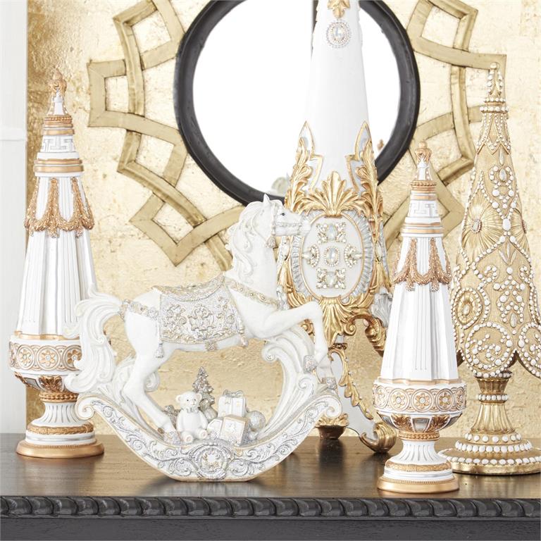 Elevate your holiday décor with this stunning 36" White Glittered Resin Ornate Jeweled Tree. Its intricate design sparkles with shimmering glitter and jeweled accents, creating a captivating centerpiece that adds elegance to any room. Crafted from durable resin, it stands 36 inches tall with a graceful 8-inch width and depth, perfect for tabletops or mantels. Bring festive luxury into your home with this eye-catching ornamental tree.