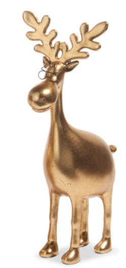 Elevate your décor with the RAZ 12.75" Gold Moose with Glasses, crafted from durable resin and available in three elegant styles. Its striking gold finish and refined design add a sophisticated touch to any space. Choose the perfect size to complement your setting: 7.75"L x 4.5"W x 12.75"H, 5.5"L x 7"W x 11.5"H, or 5"L x 5"W x 10.5"H. This distinctive piece blends charm and elegance effortlessly.