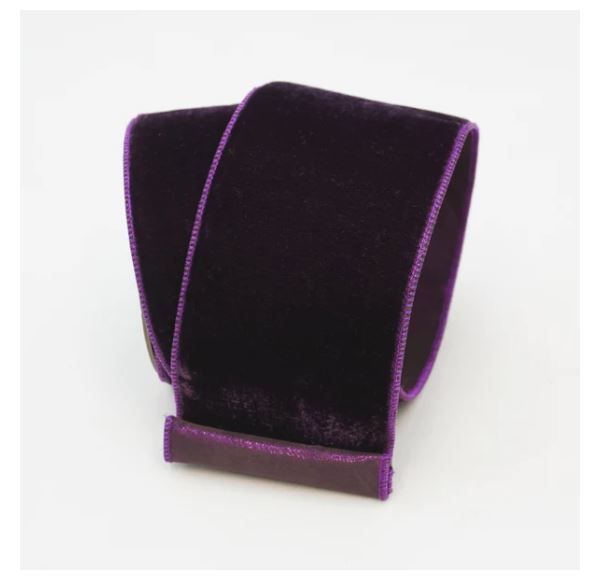 Features a bright, plush velvet with a metallic dupioni back. Ribbon is constructed with thick, wired edge and is fused with a secondary fabric to provide shape and structure.