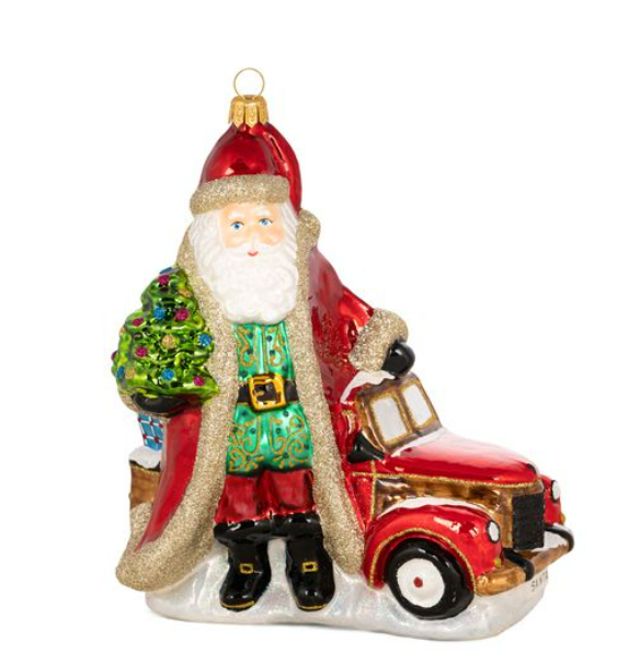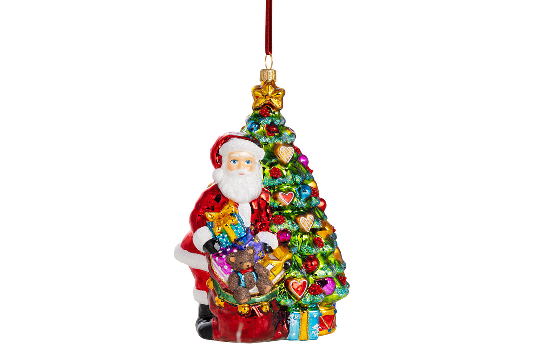 Santa Looks Best by the Tree Ornament