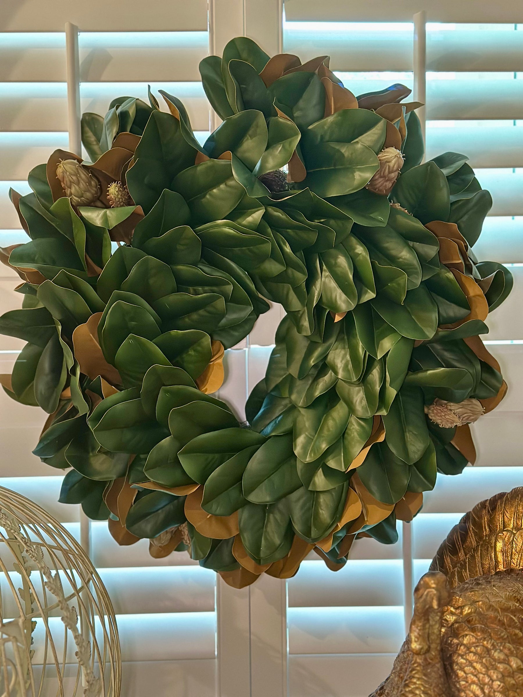 Bring timeless elegance to your home with this stunning 24" Live Look Magnolia Wreath. Crafted with lifelike magnolia leaves and blooms, it captures the natural beauty of fresh florals without the maintenance. Perfect for your front door, entryway, or accent wall, this generously sized wreath makes an impressive statement piece that welcomes guests with Southern charm. The realistic foliage looks fresh season after season, making it an investment in lasting style. Whether you're decorating for the holidays or adding year-round sophistication to your space, this magnolia wreath delivers premium curb appeal that never fades.