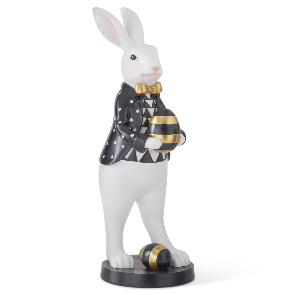 31.75"  Black & Gold Resin Boy Easter Bunny