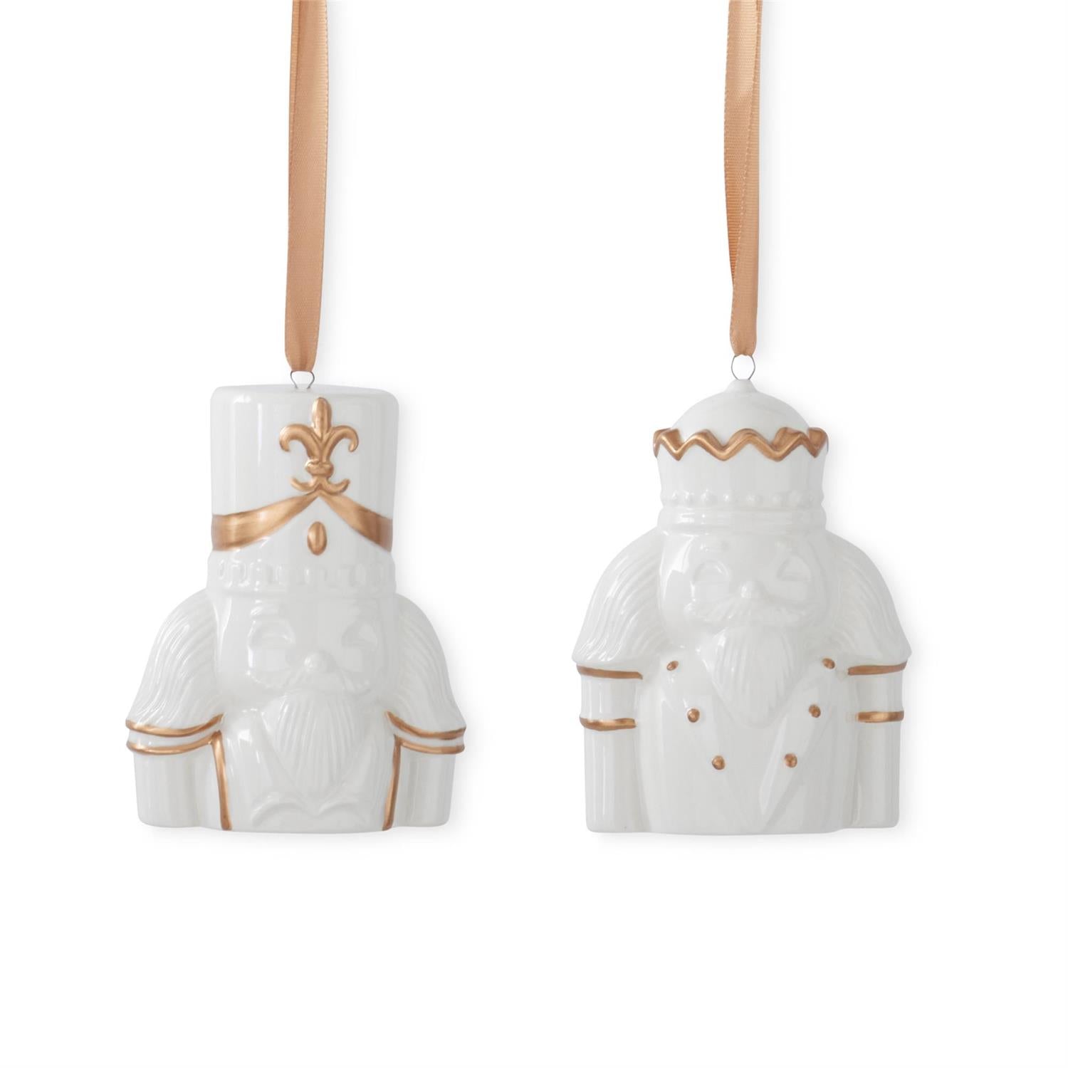 3.5" White Dolomite Nutcracker Head Ornaments - Set of 2