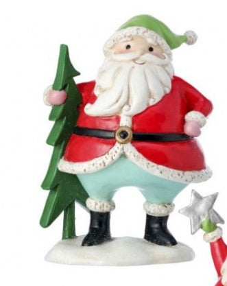 This 7.5" Jolly Santa comes in your choice of either Santa with Star or Tree. The detail of the figurine is carefully crafted in resin, making it an ideal addition to any holiday display. Perfect for your mantel or shelf, this Santa is sure to become a holiday favorite.
