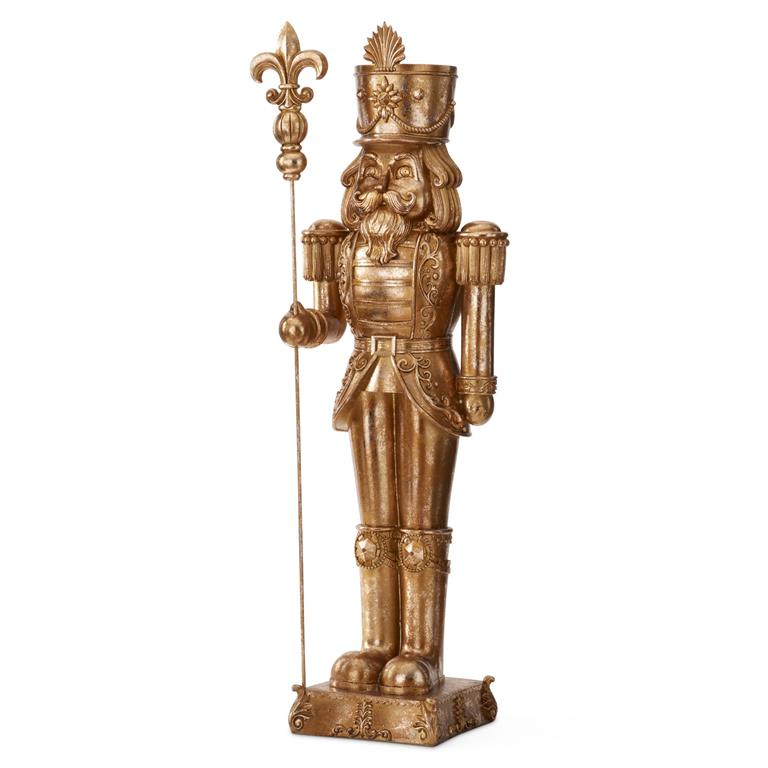 Add a timeless touch of holiday magic with this 39-inch Gold Nutcracker with Staff. Its striking gold finish and detailed craftsmanship create an elegant centerpiece for your festive decor. Standing tall and proud, this nutcracker not only enhances your seasonal display but also embodies the spirit of tradition and charm, making your celebrations unforgettable. Perfect for mantels, entryways, or as a thoughtful gift, this decorative piece brings warmth and sophistication to any setting.