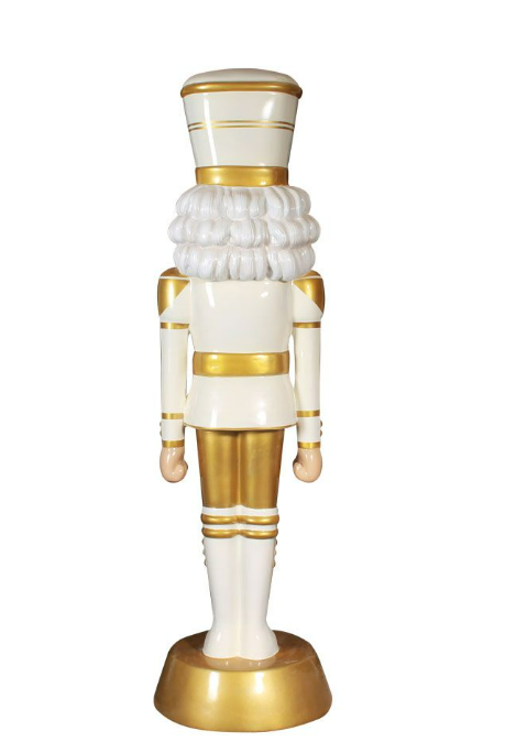 Indulge in the grandeur of our 6' Gold and White Nutcracker, a timeless masterpiece of exquisite craftsmanship. With shimmering gold accents and elegant white detailing, this regal figurine will add a touch of luxury to your holiday decor.