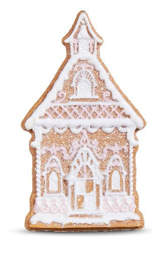This 4" Gingerbread Church Ornament is sure to be a classic addition to any Christmas tree. Crafted from resin, it features an intricate design and measures 2"L X 0.5"W X 4"H; 2.5"L X 0.5"W X 4"H. Perfect for setting the holiday mood, it's sure to bring timeless festive cheer. Choose from 2 Styles.