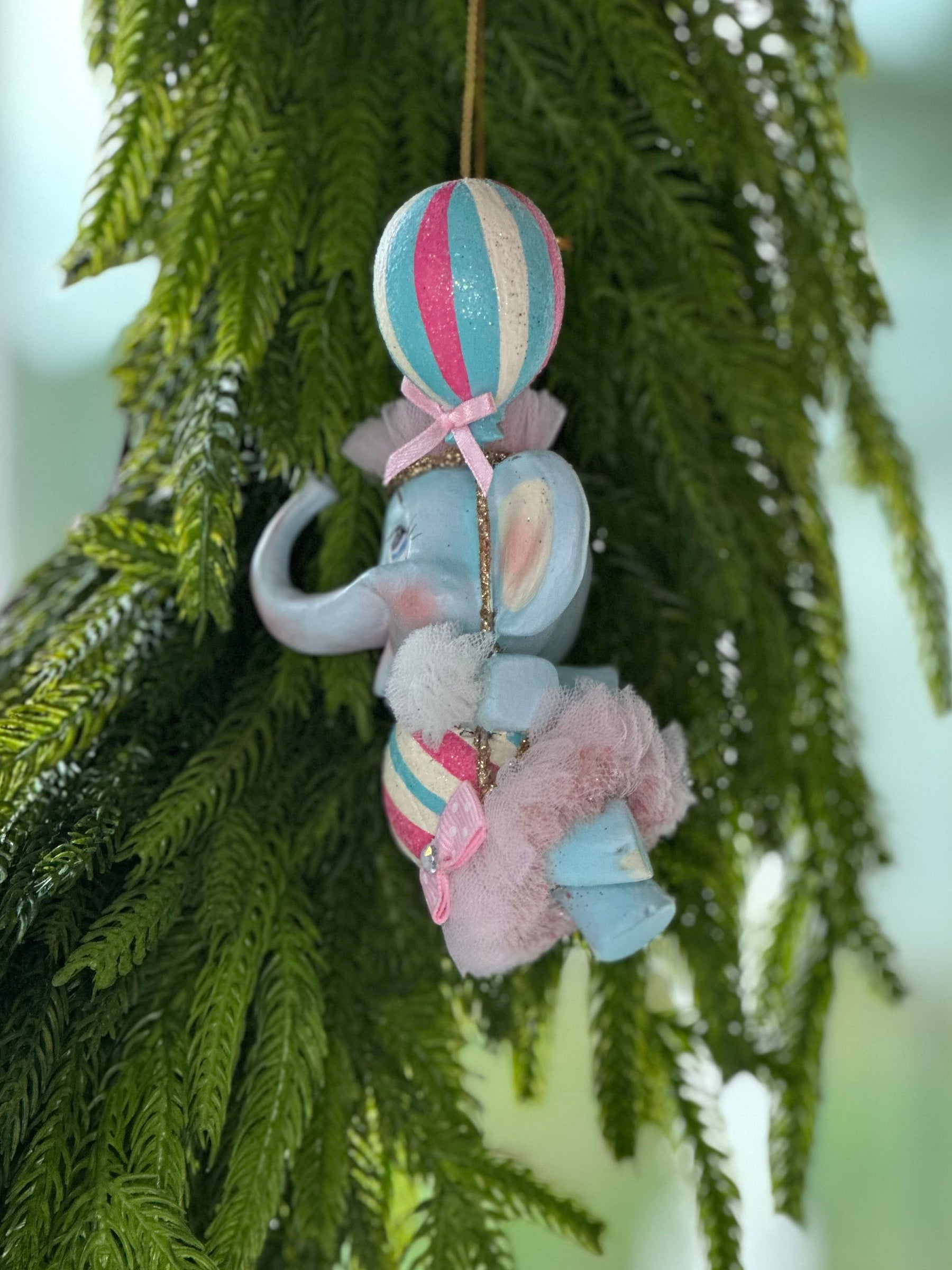 Add a touch of whimsy to your décor with this 5" Cotton Candy Carnival Elephant Ornament. Featuring a charming carnival elephant wearing your choice of a pink or blue party hat, this delightful piece brings festive cheer and playful charm to any space. Perfect for celebrating special occasions or adding a fun accent to your holiday decorations, its vibrant colors and detailed design make it an eye-catching collectible you’ll treasure year after year.